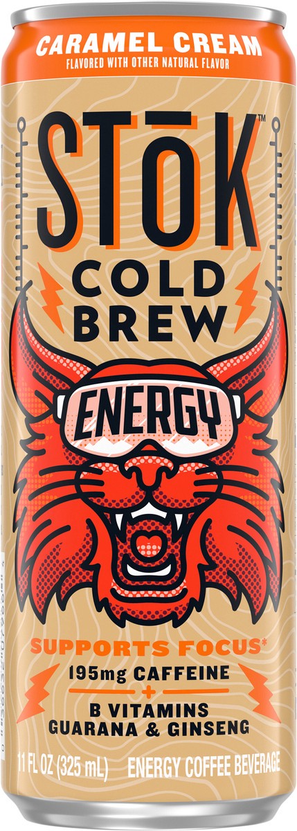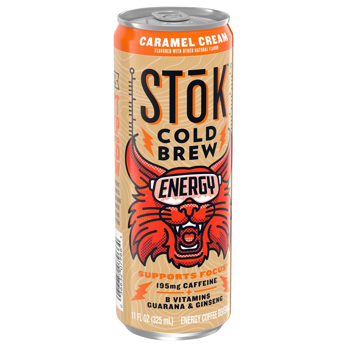 - COFFEE WITH A KICK: One 11 fl oz can of ready to drink SToK Cold Brew Energy Caramel Cream with 195 mg caffeine per serving