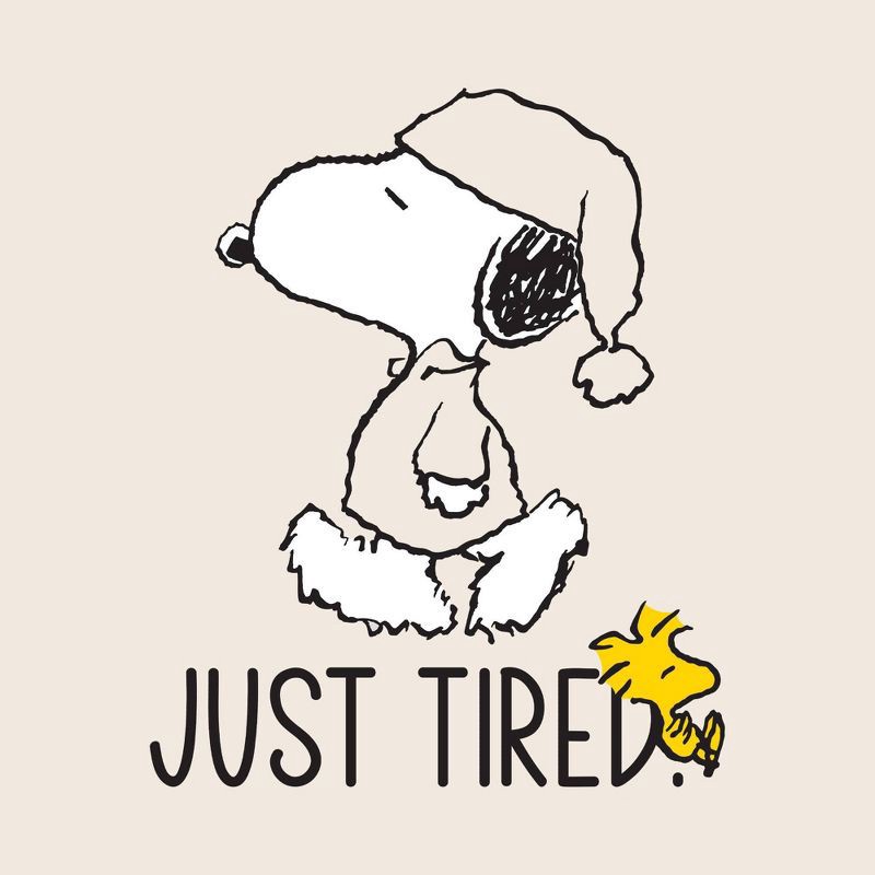 - Short-sleeve T-shirt with Snoopy graphic and "Just Tired" text
