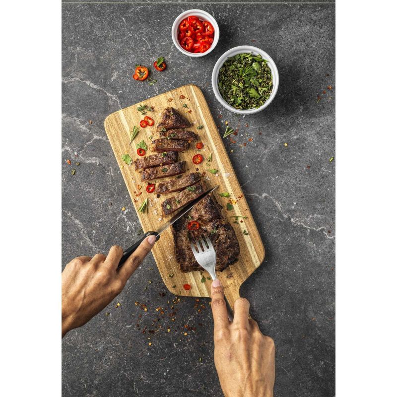 - 4.5-in serrated blade for cutting hearty steaks, chops and other meats