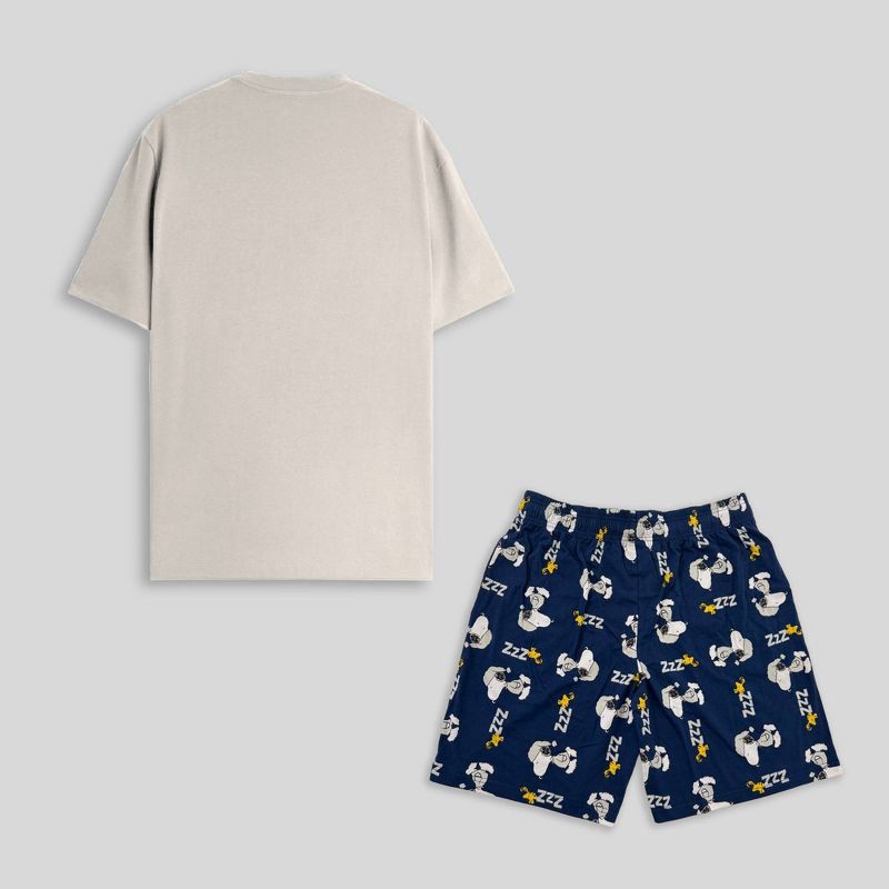 Men's Peanuts Snoopy "Just Tired" Short Sleeve Pajama Set - Natural/Navy Blue M