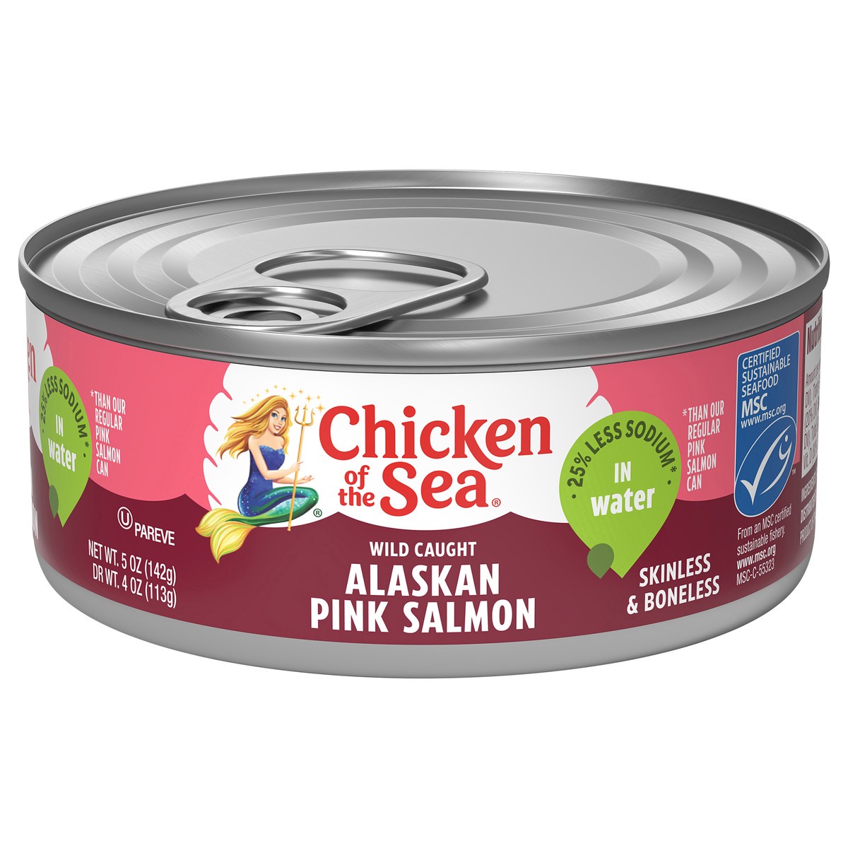 Chicken of the Sea lower sodium canned salmon features wild caught, MSC certified Alaskan skinless and boneless pink salmon with 25% less sodium than regular 5 oz. canned salmon. Featuring no GMOs or …