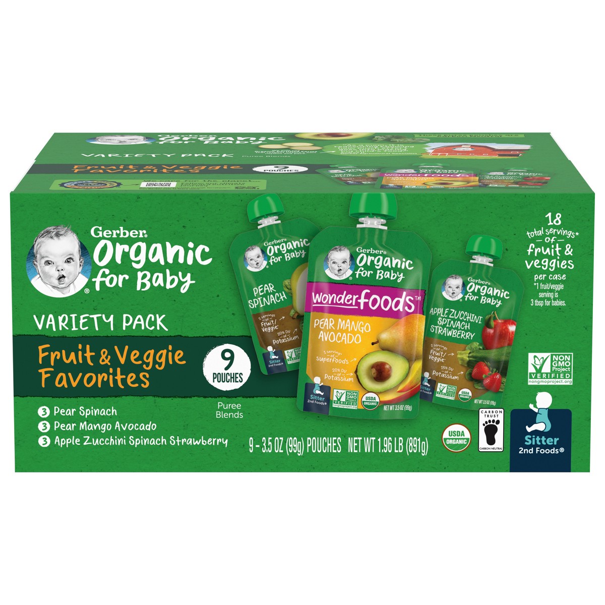 Gerber 2nd Foods Organic for Baby, Fruit & Veggie Variety Pack, 3.5 oz Pouch (9 Pack)