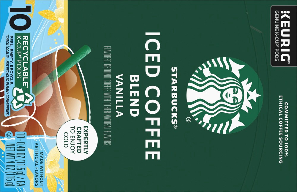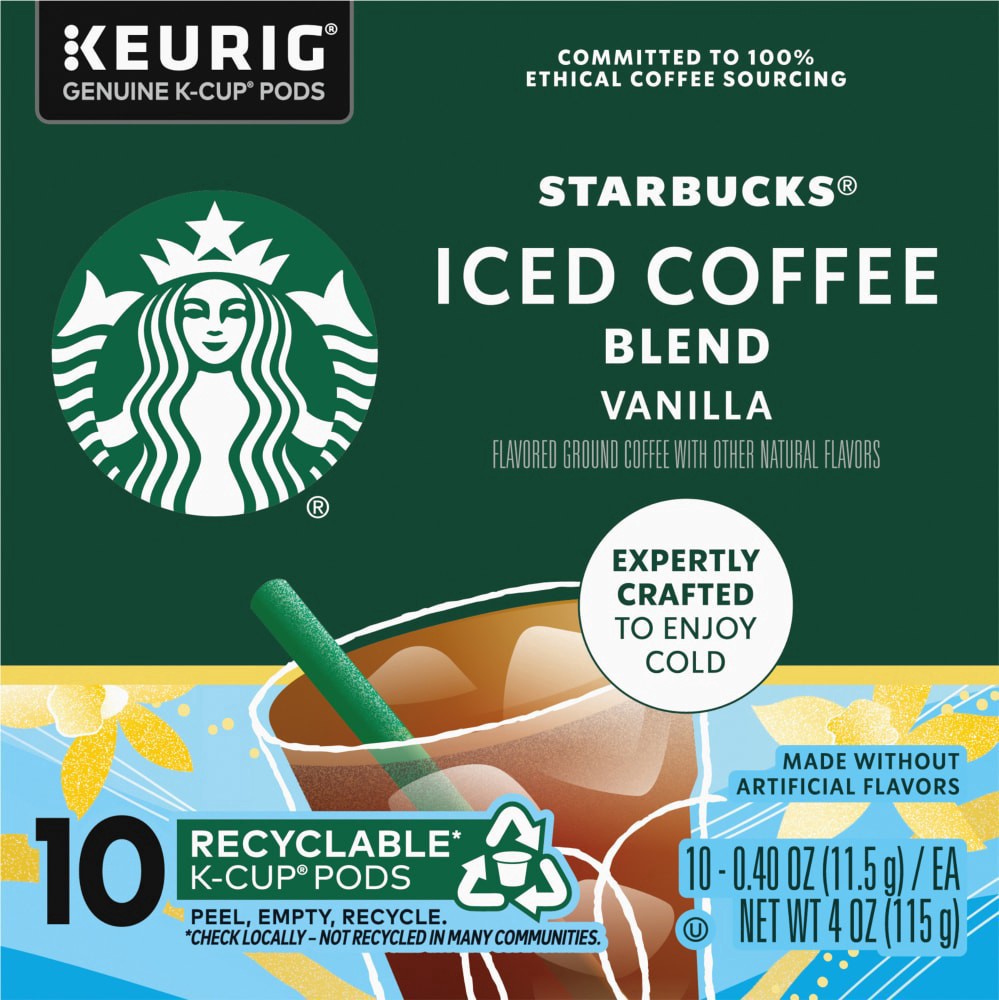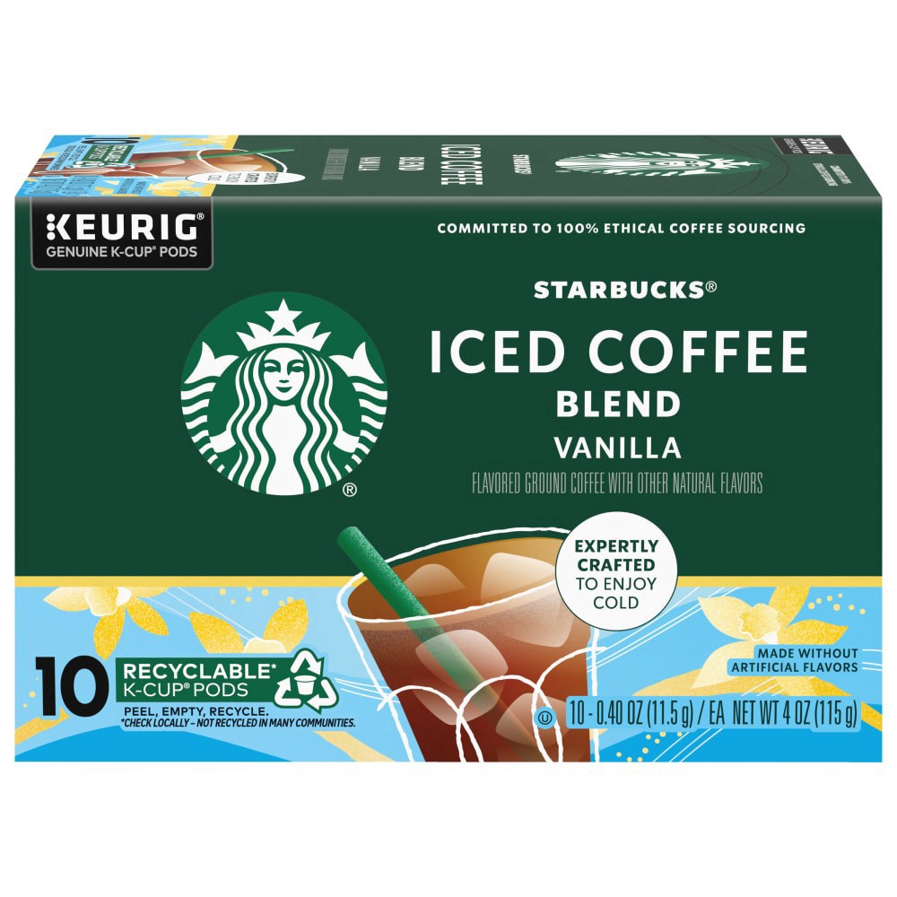 - PREMIUM ICED COFFEE IN A K-CUP POD: Starbucks delivers fresh-tasting iced coffee with this 10-count box of Starbucks Iced Coffee Blend Vanilla Naturally Flavored iced coffee K-Cup pods for Keurig coffee makers—new and expertly crafted to enjoy cold