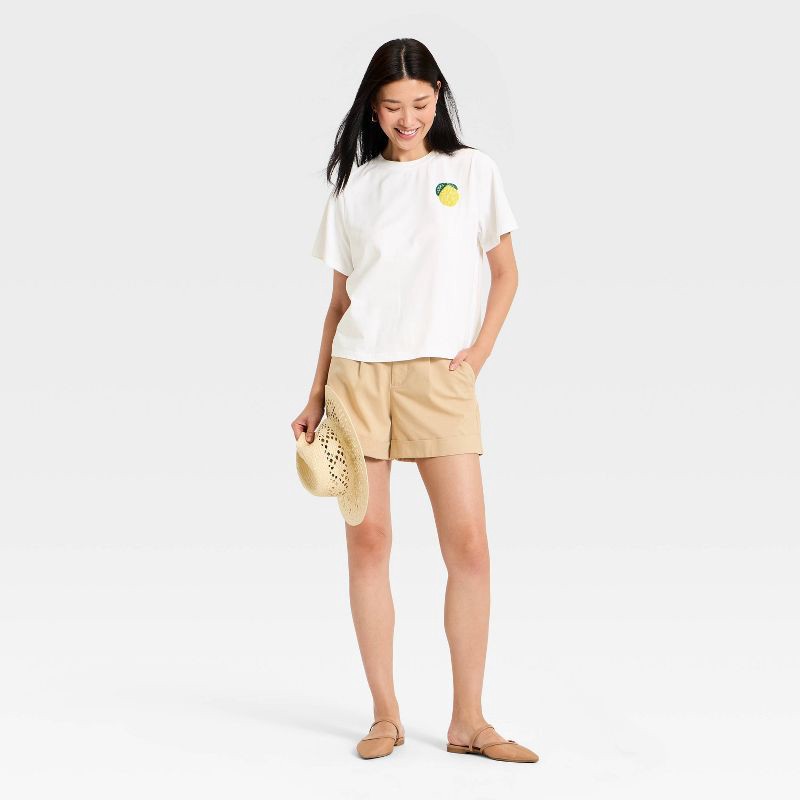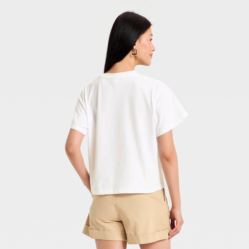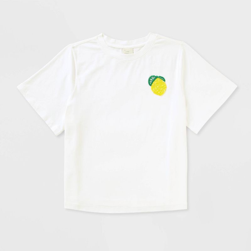 Women's Embellished T-Shirt - A New Day™ White/Lemon M