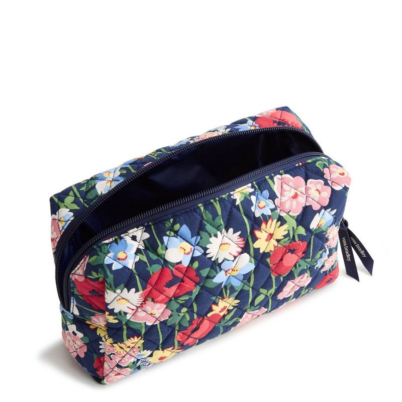 Vera Bradley Poppy Meadow Essential Medium Storage Travel Pouch - Navy Blue