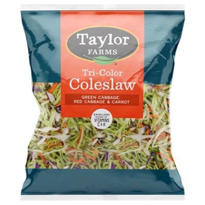 Taylor Farms Tri-color Coleslaw is a blend of fresh raw green cabbage, red cabbage, and carrot that adds a rainbow of color and nutrients to your favorite recipes. Great for side salads, sandwiches, s…