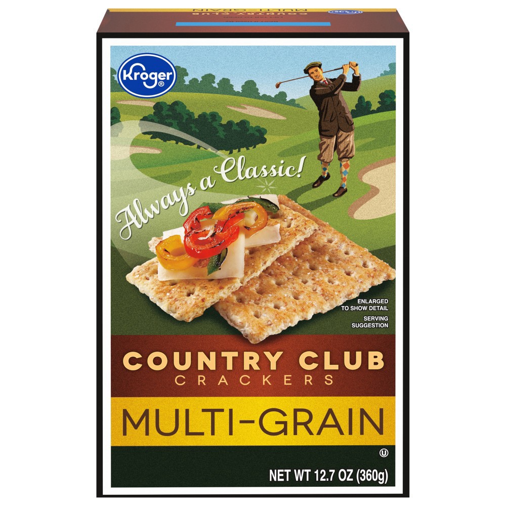 Kroger® Country Club Multi-Grain Crackers add an exciting twist to snack time. Experience the delightful crunch and light taste of a more sophisticated cracker. With their light, flaky, and buttery te…