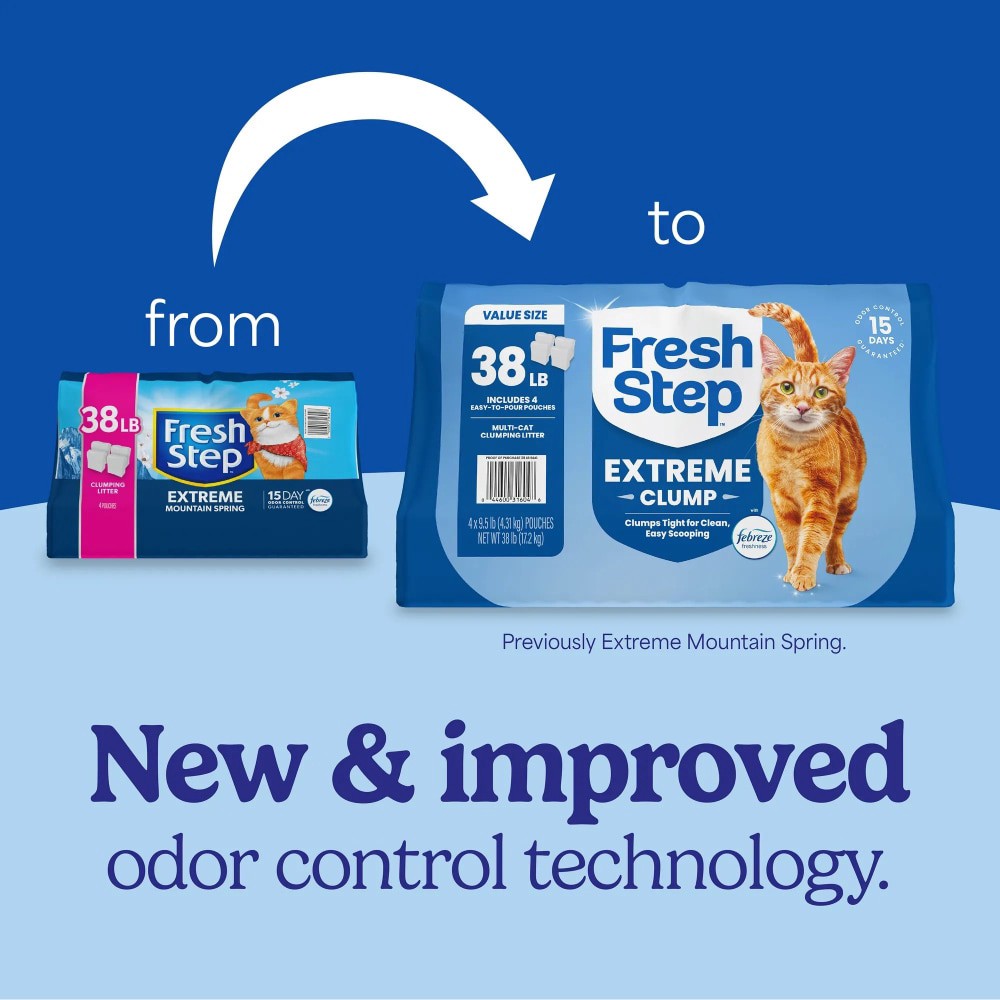 Get total odor control in your cats litter box with Fresh Step Extreme Clumping Litter With Febreze Freshness. Formulated with Ammonia Block technology and the power of Febreze, this clumping cat litt…