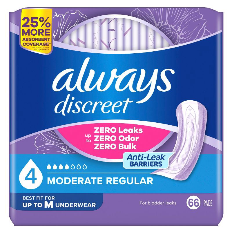 Always Discreet Incontinence & Postpartum Incontinence Pads for Women - Moderate Absorbency - Size 4 - 66ct