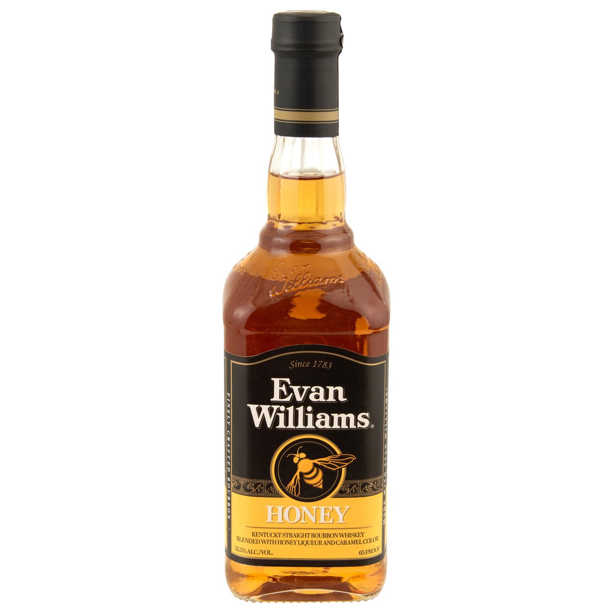 Kentucky straight bourbon whiskey blended with honey liqueur. The smoothness of Evan Williams with as sweet honey taste. Perfect as a chilled shot, on the rocks or mixed. EvanWilliamsHoney.com. Contai…