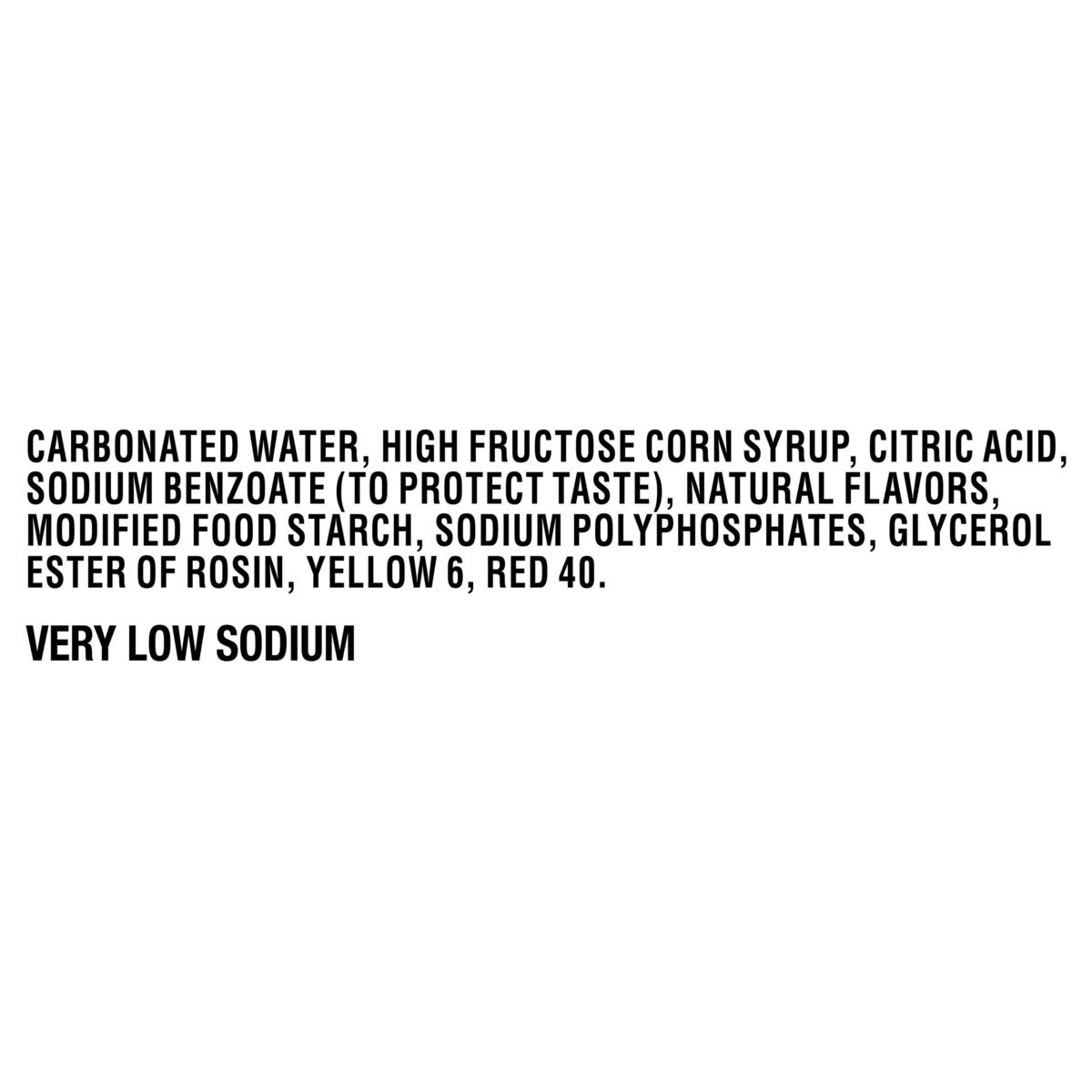 Carbonated Water, High Fructose Corn Syrup, Citric Acid, Sodium Benzoate (To Protect Taste), Natural Flavors, Modified Food Starch, Sodium Polyphosphates, Glycerol Ester Of Rosin, Yellow 6, Red 40.