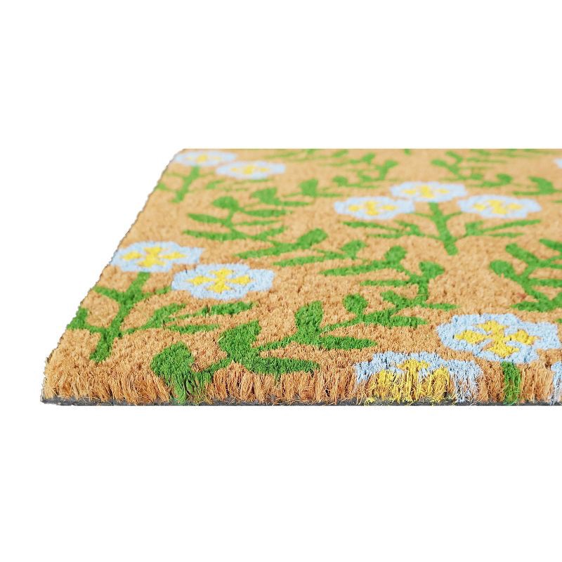 National Brand 18"x30" Boxwood Flower Coir Doormat Nautral/Green/Blue