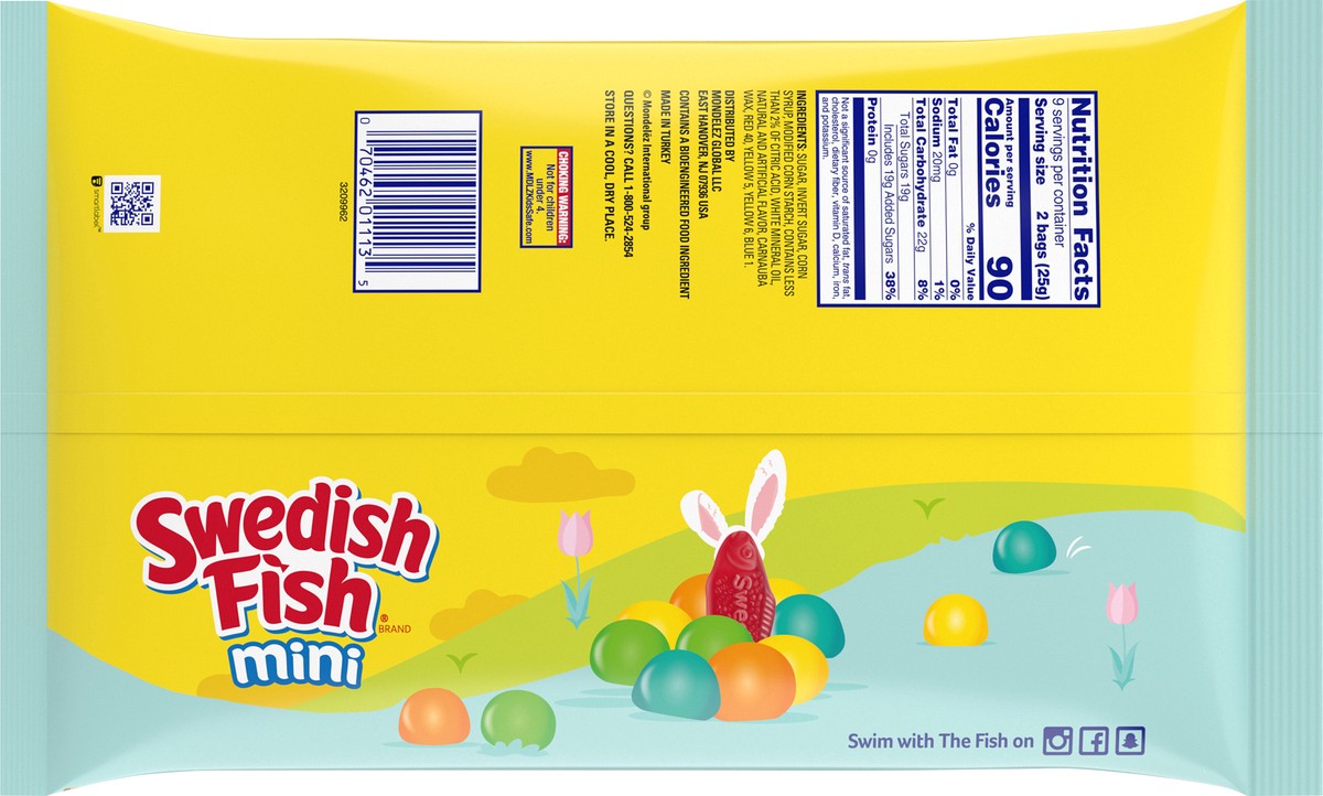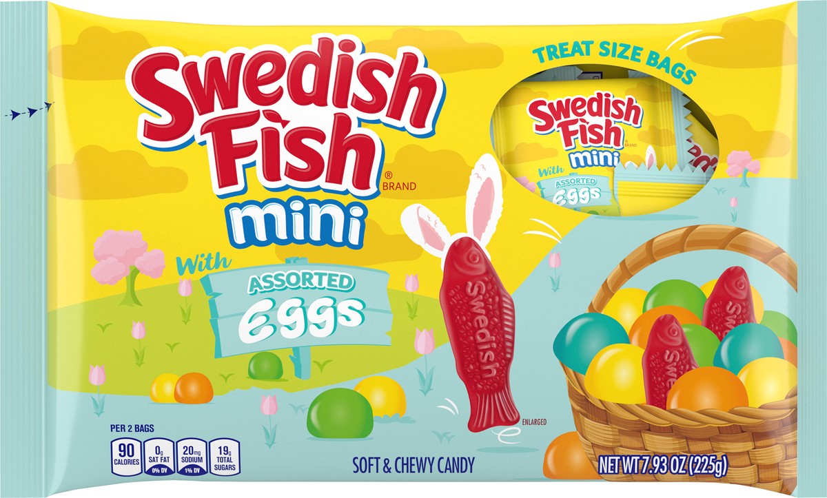 SWEDISH FISH Mini with Assorted Eggs Soft & Chewy Easter Candy is a fun sweet snack to share and enjoy this Easter season. This assortment of gummy snacks is a mix of bite-sized SWEDISH FISH and littl…