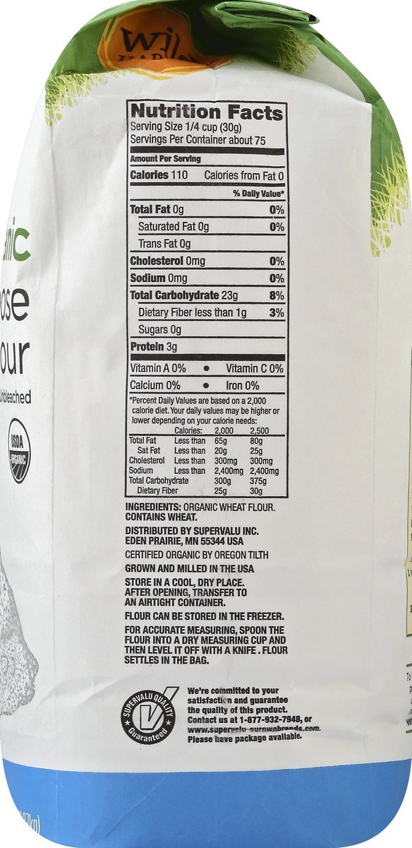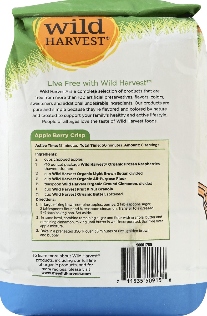 Unbleached. USDA organic. Per 1/4 Cup: 110 calories; 0 g sat fat (0% DV); 0 mg sodium (0% DV); 0 g sugars. Live Free with Wild Harvest: Wild Harvest is a complete selection of products that are free f…