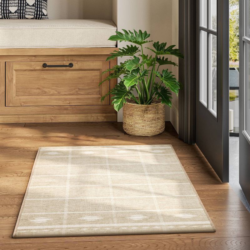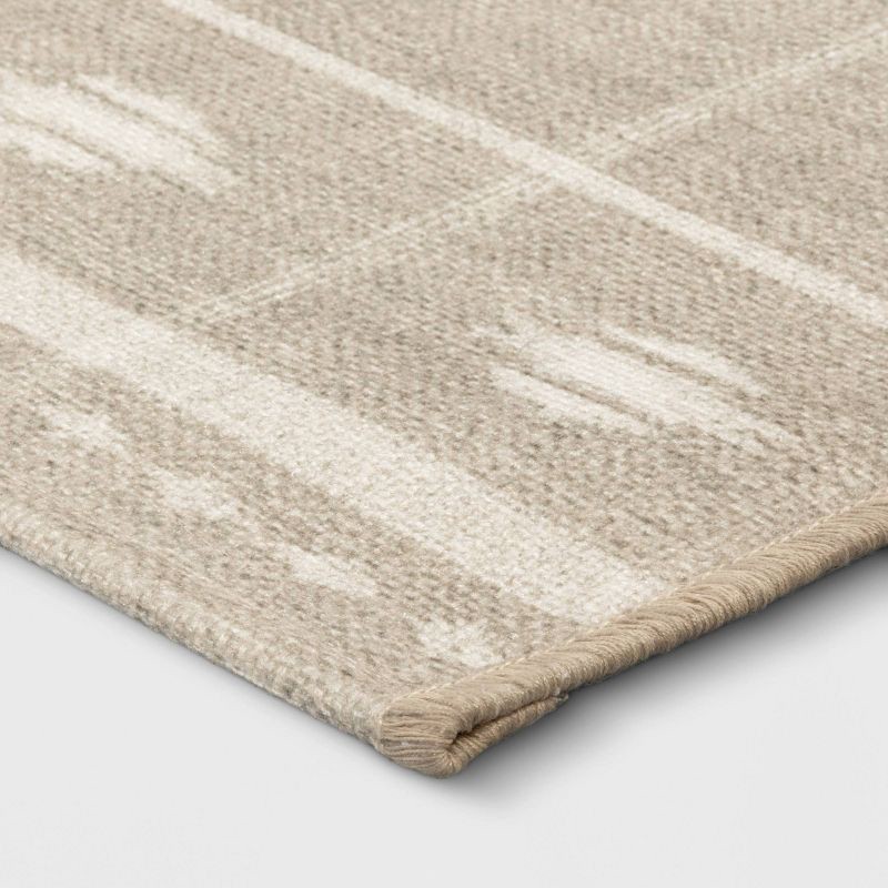 Bring a touch of artisanal charm to your home with this Ikat Striped Scatter Accent Rug from Threshold™. This flat-pile rug features a cream-colored ikat pattern along the border, complemented by a st…