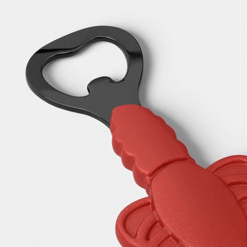 Add seaside charm to your home bar with this Lobster Bottle Opener from Room Essentials™. Made of stainless steel, this bottle opener has a black mouth ideal for opening metal caps with ease. It featu…
