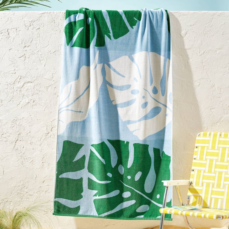 Bring tropical cool to the beach or pool with this Leaf Oversized Beach Towel from Room Essentials™. Crafted from lightweight 100% cotton terry fabric, this oversized towel offers soft comfort and qui…