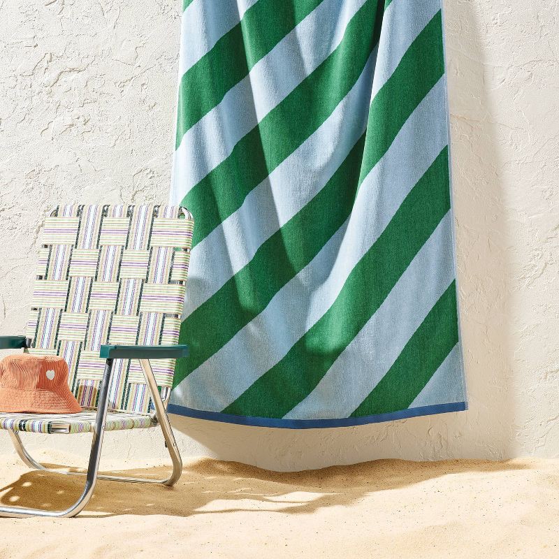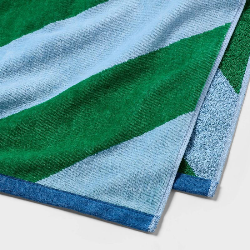 36"x72" Reversible Diagonal Striped Oversized Beach Towel Blue/Green - Room Essentials™