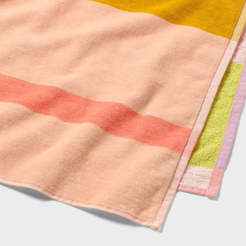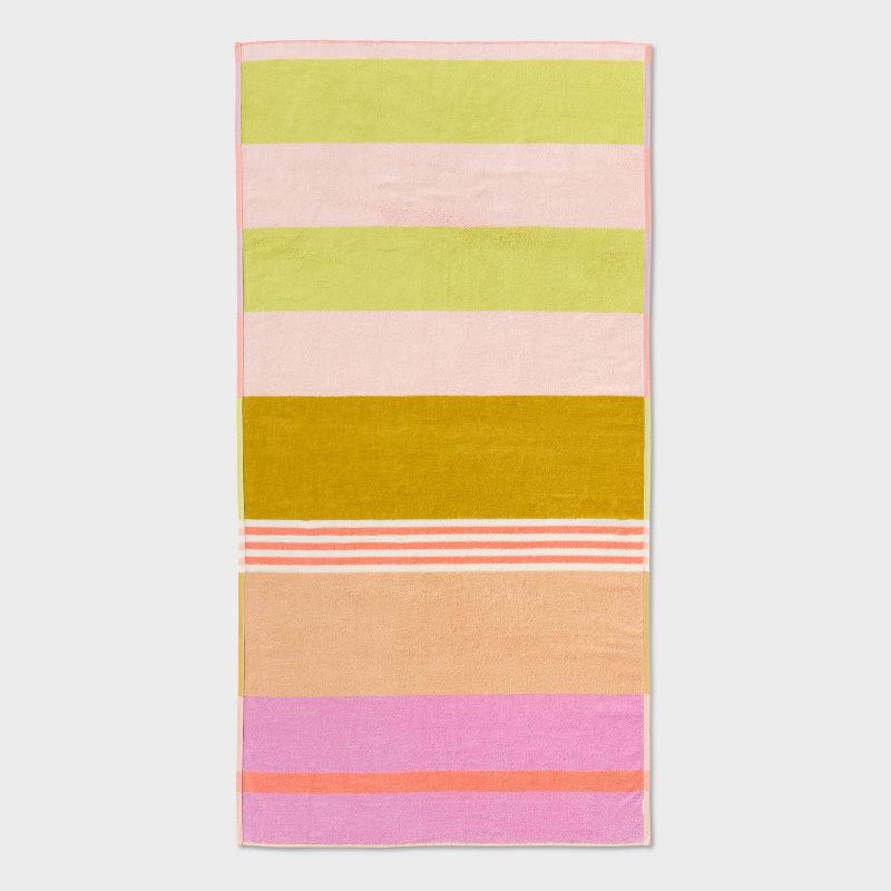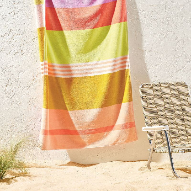 Elevate your beach or poolside look with this Reversible Crosswoven Multi-Striped Oversized Beach Towel from Room Essentials™. Crafted from lightweight 100% cotton terry fabric, this oversized towel o…