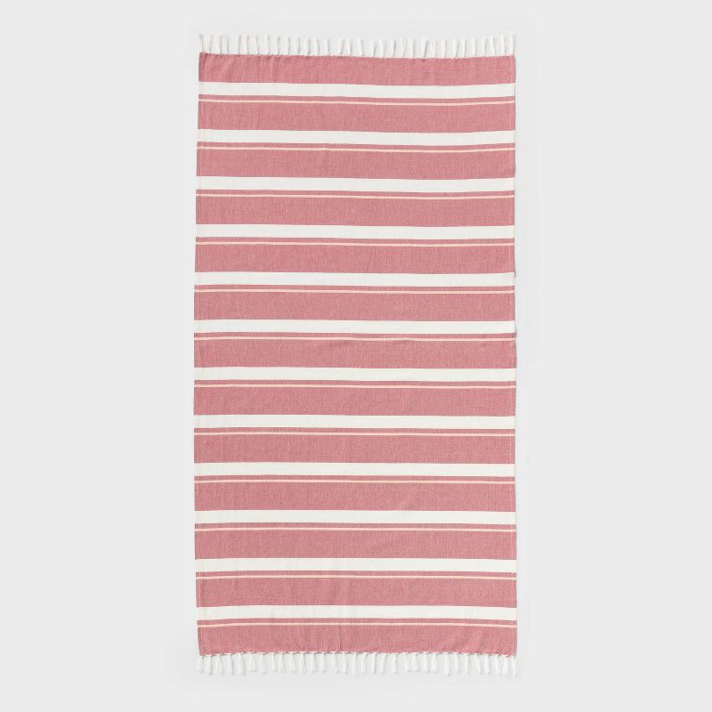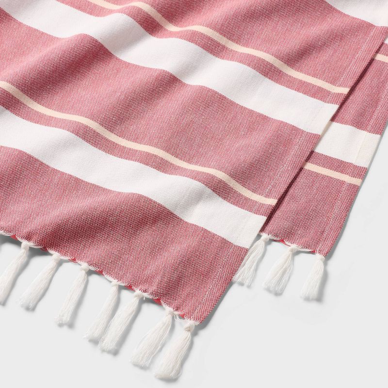 36"x72" Jacquard Turkish Lightweight Striped Oversized Beach Towel with Knotted Fringe Red - Room Essentials™