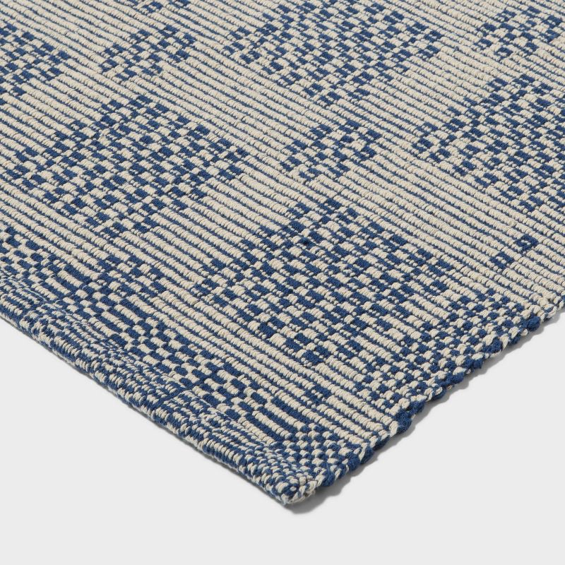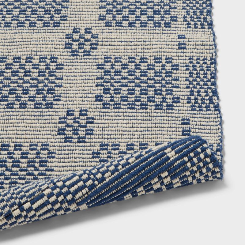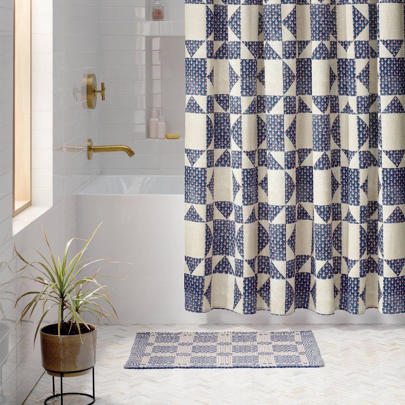 Instantly upgrade your bathroom decor with this Americana Geo Bath Rug from Threshold™. The rectangular bath mat features a navy Americana geometric pattern on a khaki backdrop for a fun, festive look…