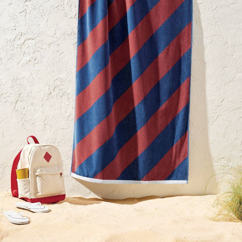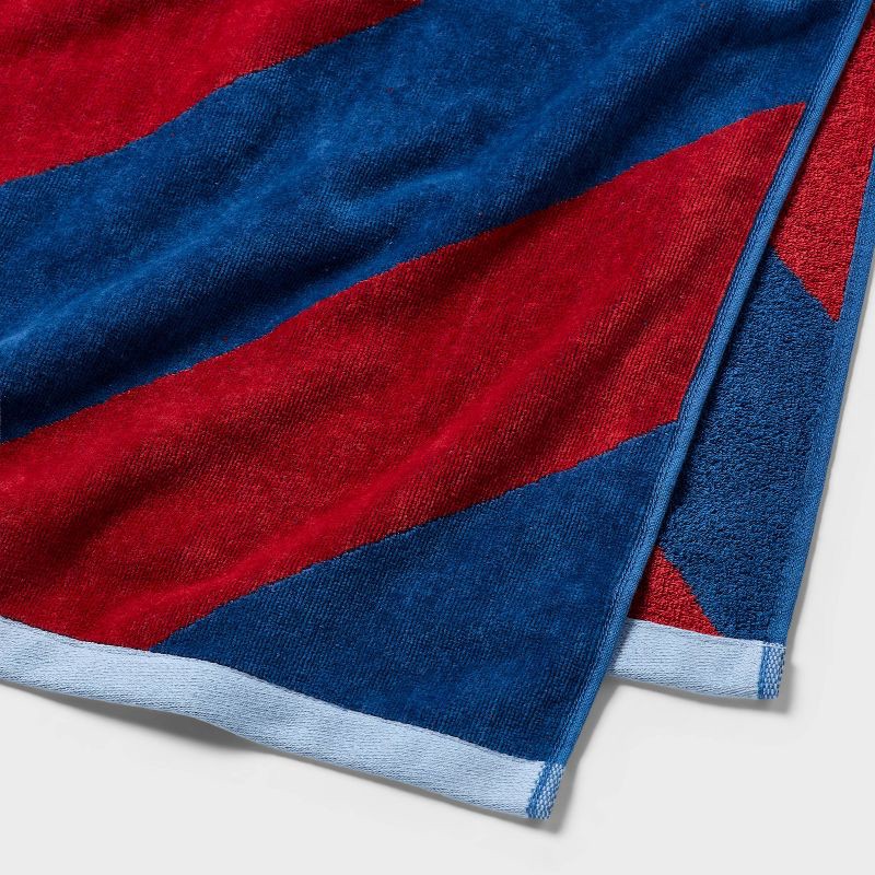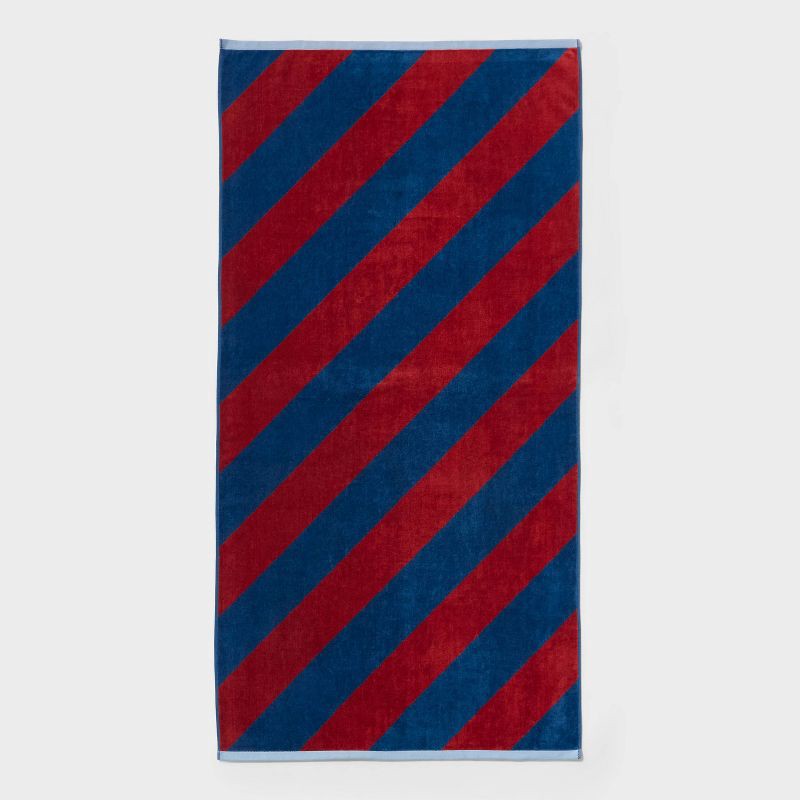 36"x72" Reversible Diagonal Striped Oversized Beach Towel Blue/Red - Room Essentials™