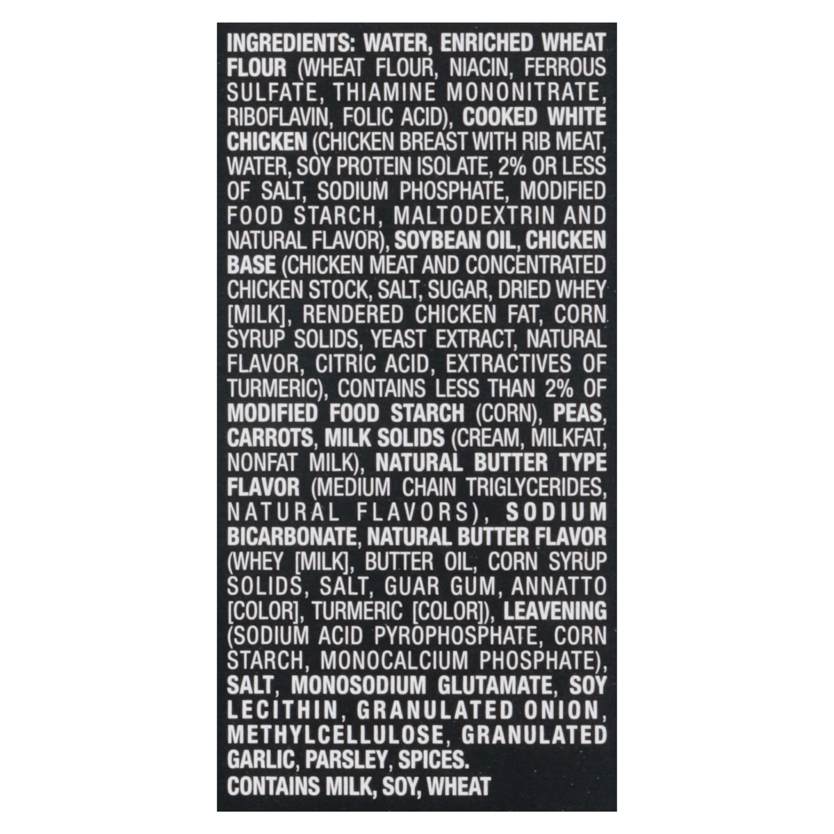 Water, Enriched Wheat Flour (Wheat Flour, Niacin, Ferrous Sulfate, Thiamine Mononitrate, Riboflavin, Folic Acid), Cooked White Chicken (Chicken Breast with Rib Meat, Water, Soy Protein Isolate, 2% or …