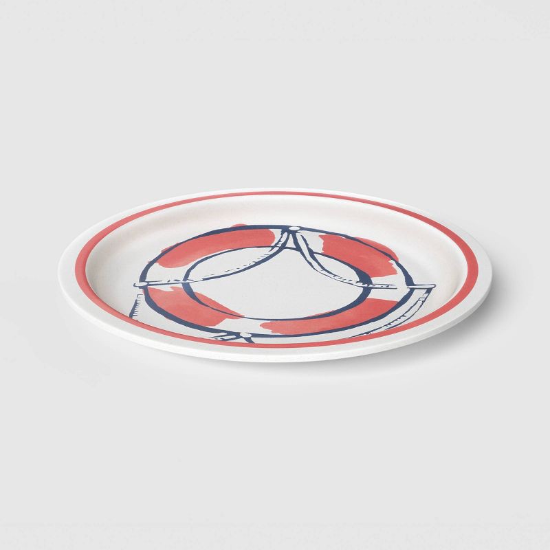 Get excited for mealtime with this Anchor Melamine Dinner Plate from Room Essentials™. Made from BPA-free bamboo and melamine material, this dinner plate features a red and blue life preserver print i…