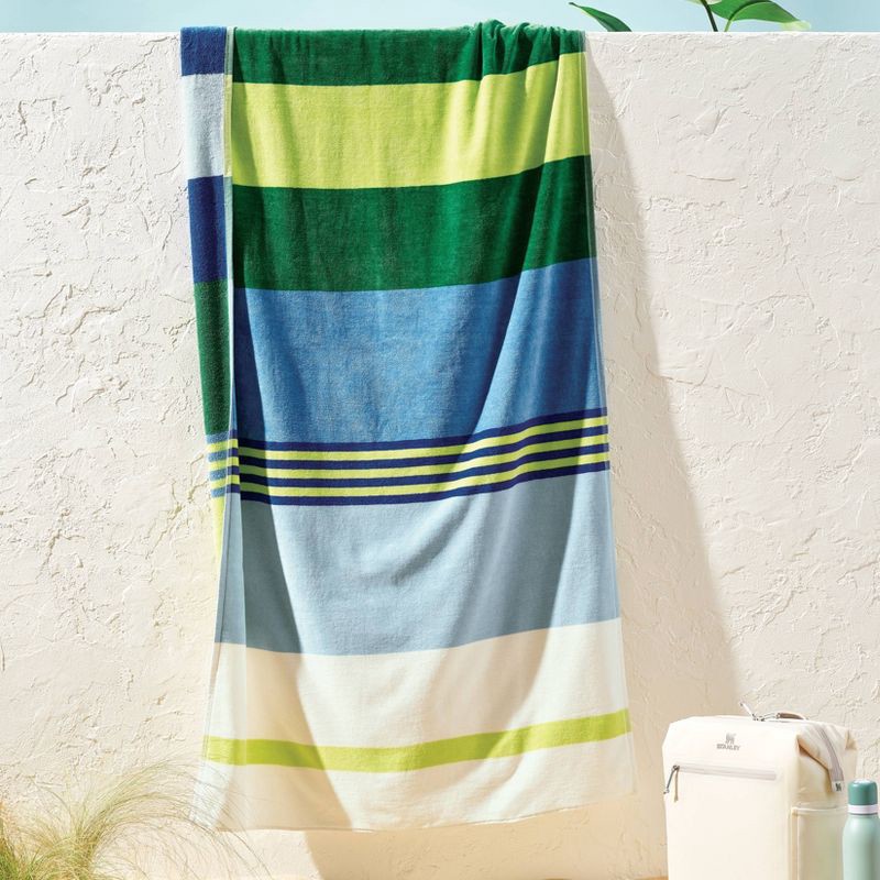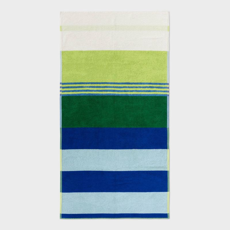 36"x72" Reversible Crosswoven Multi Striped Oversized Beach Towel Blue/Green - Room Essentials™
