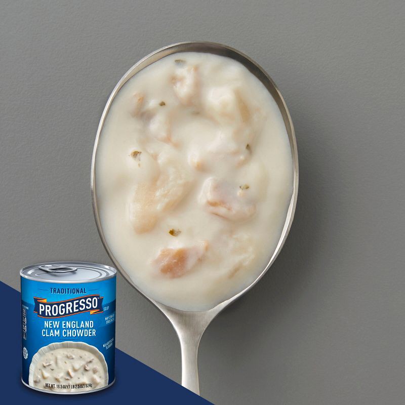 Experience the rich satisfaction of Progresso Traditional New England Clam Chowder. Made with chunks of real potatoes and clams, this rich, creamy, gluten-free soup can warm up the coldest of days. Se…
