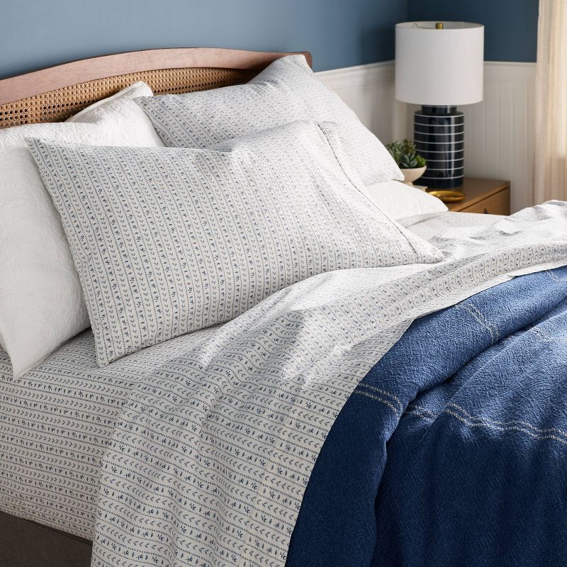 Refresh your bedroom with this 250-Thread-Count Organic Percale Sheet Set from Threshold™. Washed to create the look and feel of vintage sheets, this four-piece bedding set includes one fitted sheet, …