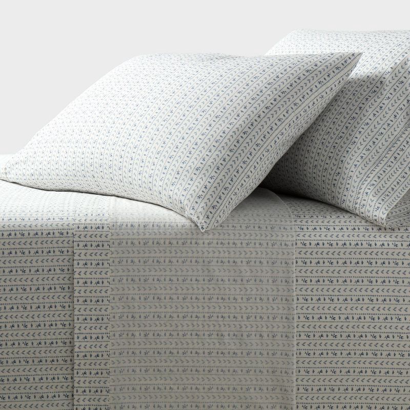 King Organic Percale Printed Sheet Set Ivory Floral Stripe - Threshold™