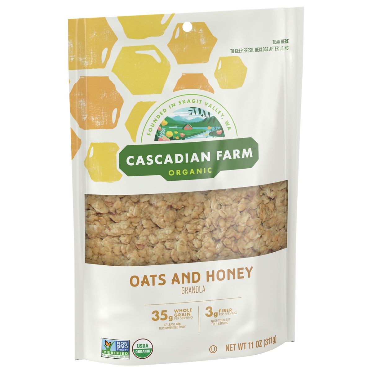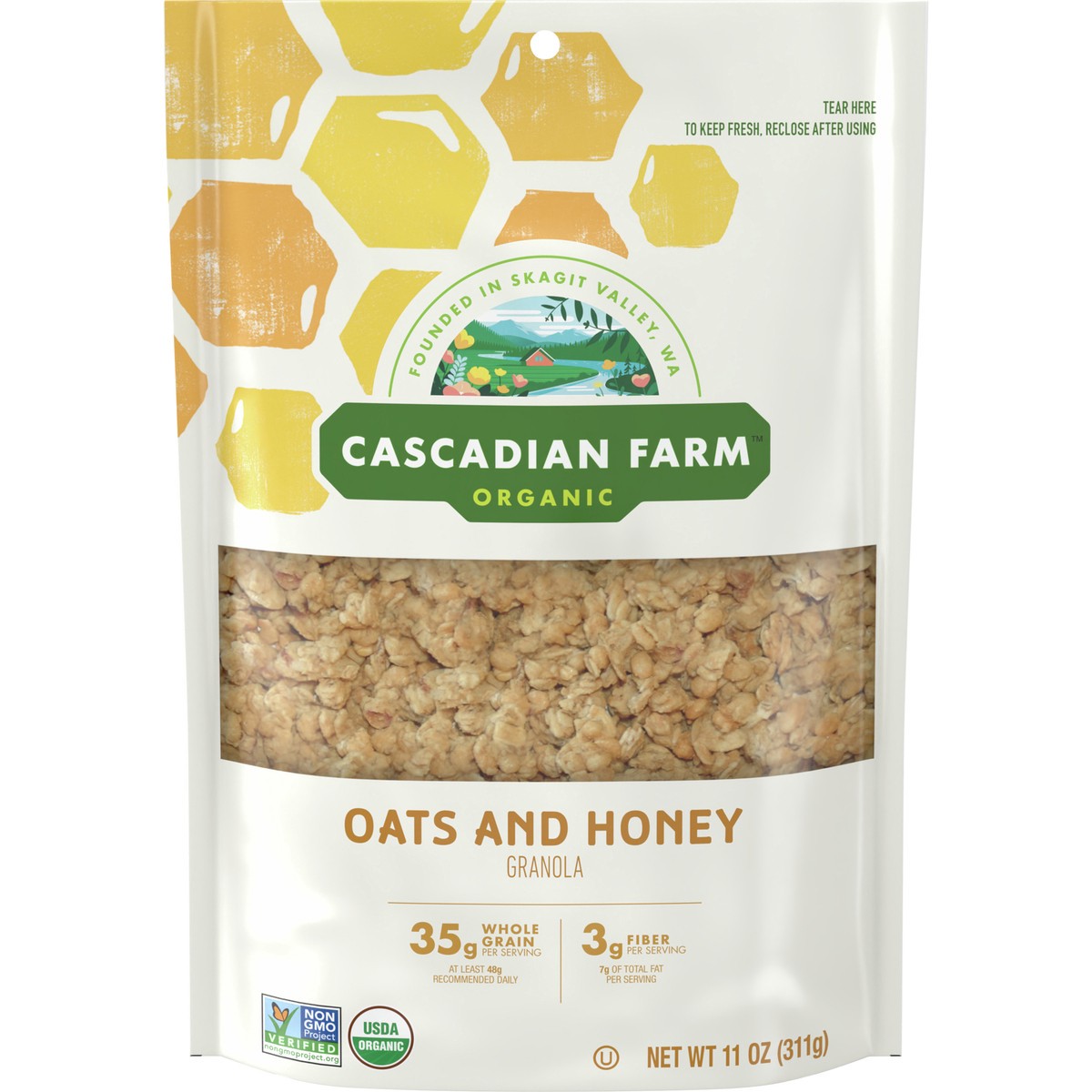 Cascadian Farm Organic Oats and Honey Granola Cereal comes loaded with delicious whole grain oats and golden honey. With 35 grams of whole grain and 3 grams of fiber per serving, this hearty organic g…