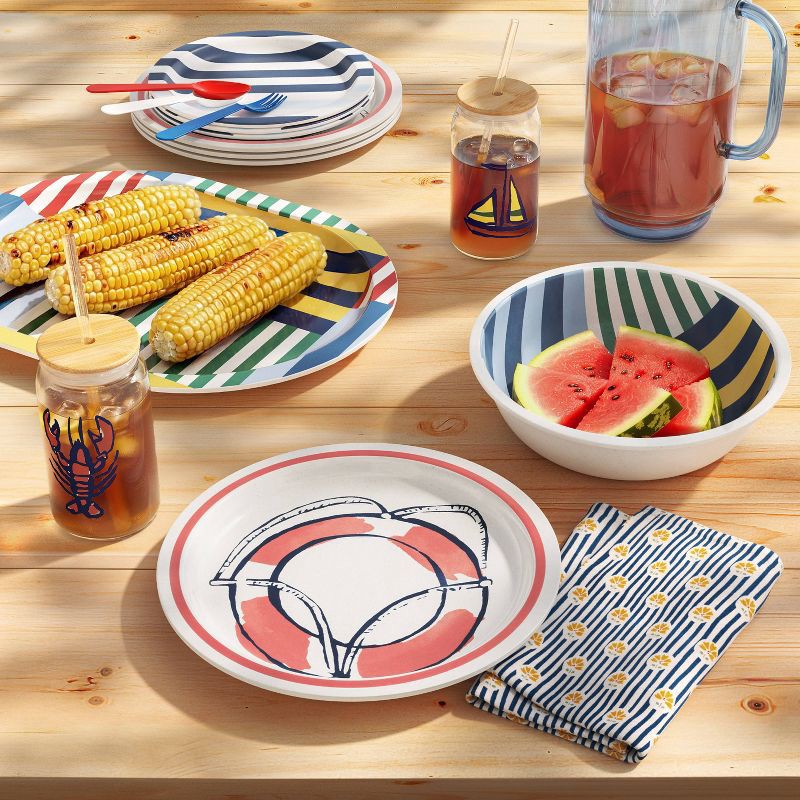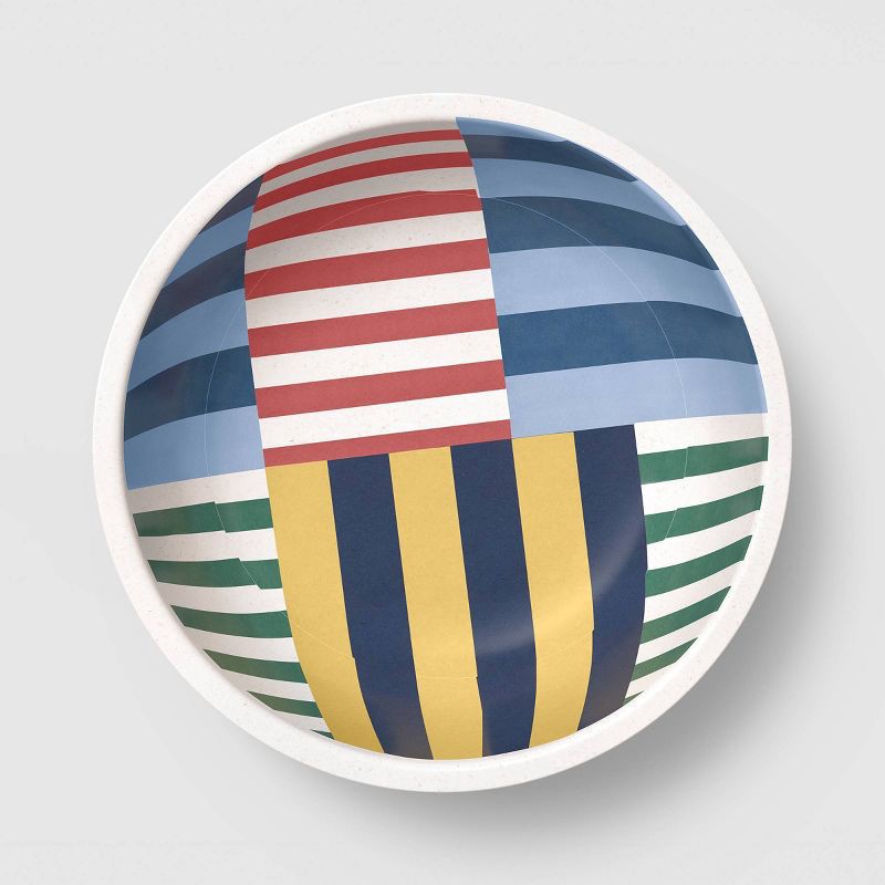 Serve a variety of dishes in style with this Melamine Large Serve Bowl from Room Essentials™. Made of BPA-free melamine, this large round serving bowl features a broken striped pattern along the insid…