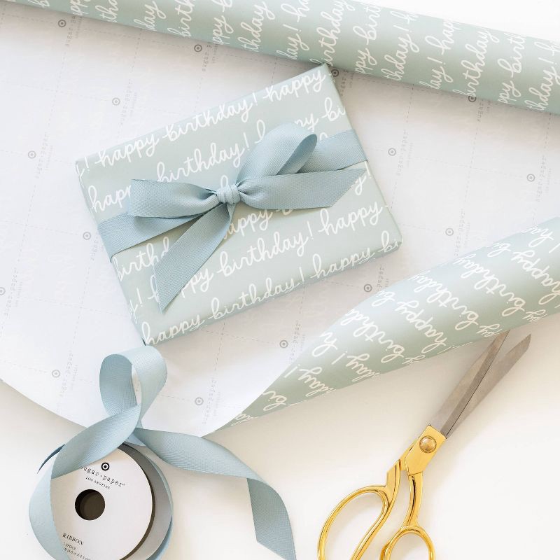 Sugar Paper + Target 118"x30" 'Happy Birthday' Script Gift Wrapping Paper Mint Green - Sugar Paper™ + Target