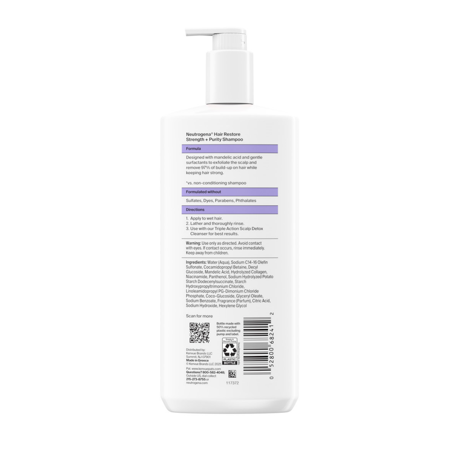 Gently remove 97% of buildup on hair and help reduce shedding due to breakage* with Hair Restore Strength + Purity Shampoo. Formulated with hydrolyzed collagen, 1.5% mandelic acid (alpha hydroxy acid)…
