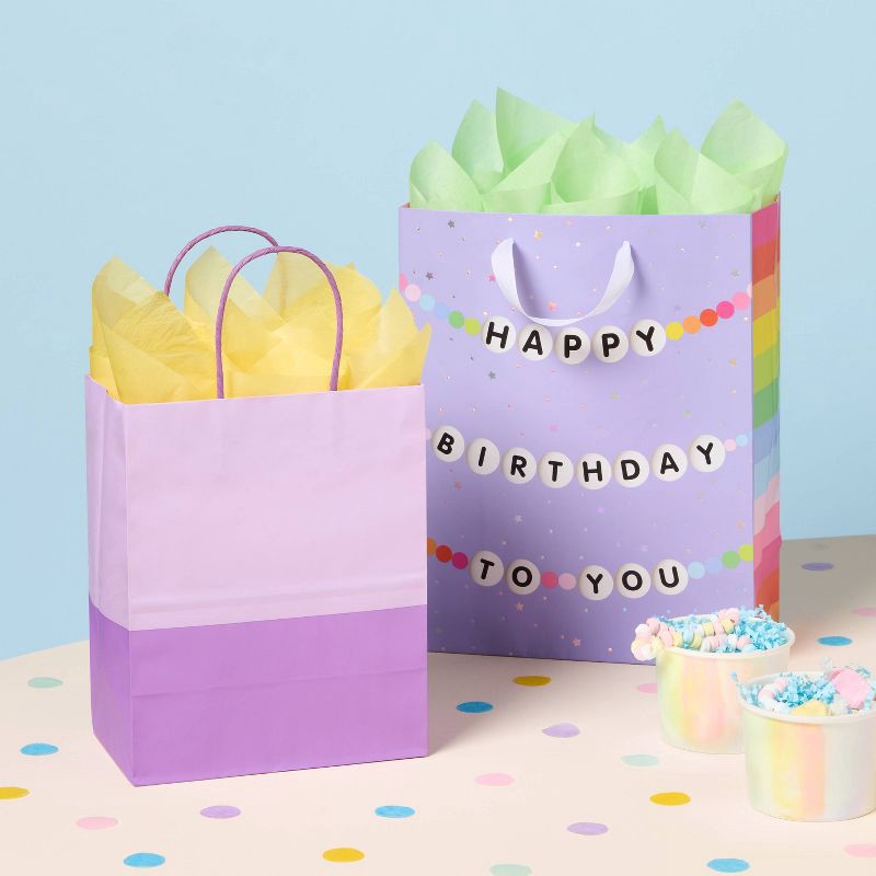 Make your surprises even more presentable with the Small Color Block Gift Bag Purple from Spritz™. Featuring a classic, catchy design, this small bag adds a fun touch to birthday gifting. Made from du…
