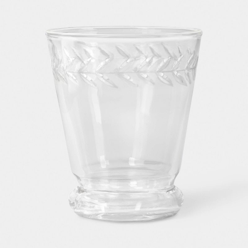 Amp up your drinkware collection with this 8.45-Ounce Floral Stemless Wine Glass from Threshold™. Made of recycled glass, this stemless wine glass features floral detailing on the rim for an elegant t…