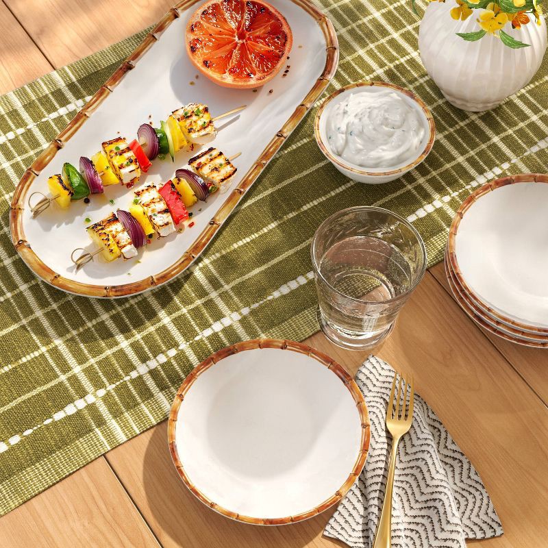 Spruce up your appetizer spread with this 3.5-Fluid Ounce Bamboo Border Dip Bowl from Threshold™. Made of BPA-free melamine, this dip bowl is accentuated by a bamboo detailing on the border for a clas…
