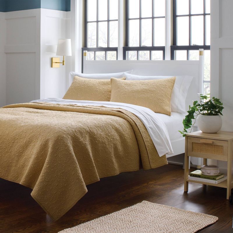 King Heirloom Floral Stitch Quilt Yellow - Threshold™