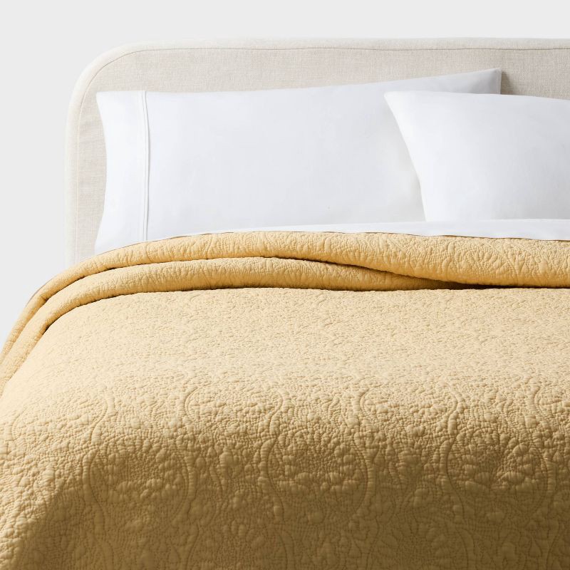 Full/Queen Heirloom Floral Stitch Quilt Yellow - Threshold™