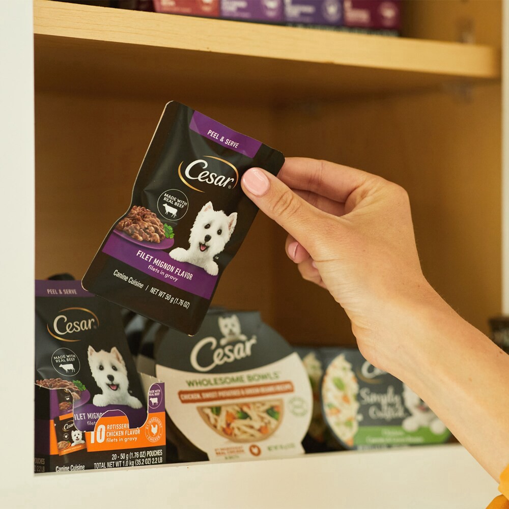 Cesar Filets in Gravy Filet Mignon Flavor/Rotisserie Chicken Flavor Mini-Pouch Canine Cuisine 20 - 50 g Pouches