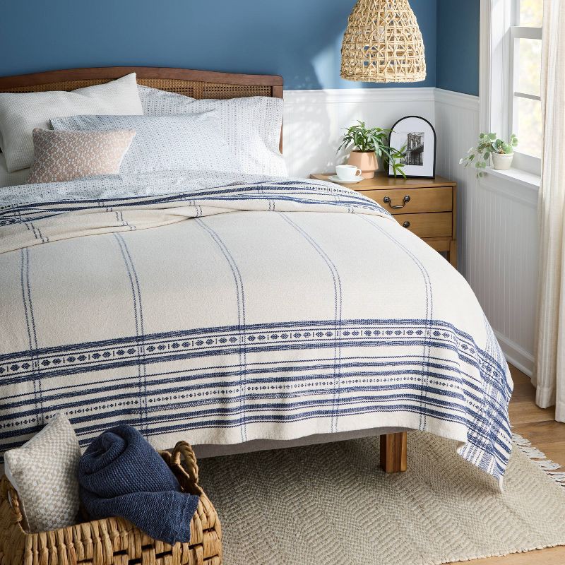 Whether you're enjoying the fireworks or getting tucked in for a movie night, this Americana Yarn Dyed Plaid Blanket from Threshold™ will keep you feeling cozy throughout. This reversible throw blanke…