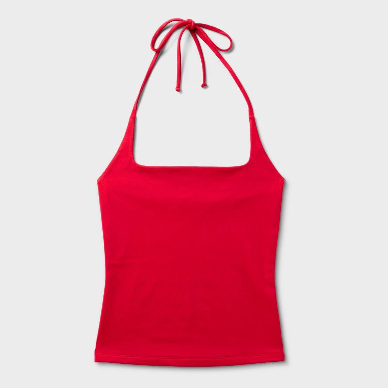 Joy halter top from Wild Fable™ in a solid shade. Features a square-front halter neckline with adjustable behind-the-neck ties for a personalized fit. Crafted from midweight recycled polyester interlo…