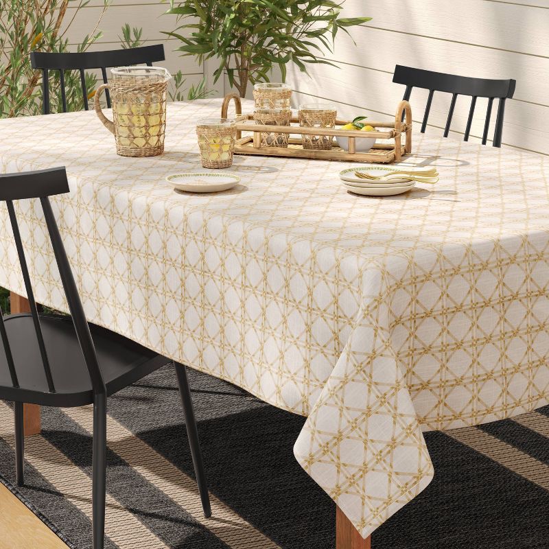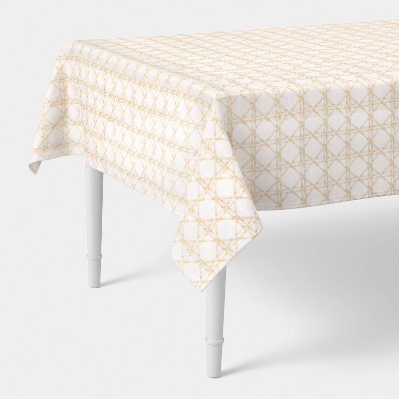 This 84-Inch x 60-Inch Tablecloth from Threshold™ instantly elevates your tablescape. Made from plain-weave cotton, this tablecloth features elegant lattice patterning on a khaki-color backdrop. The t…