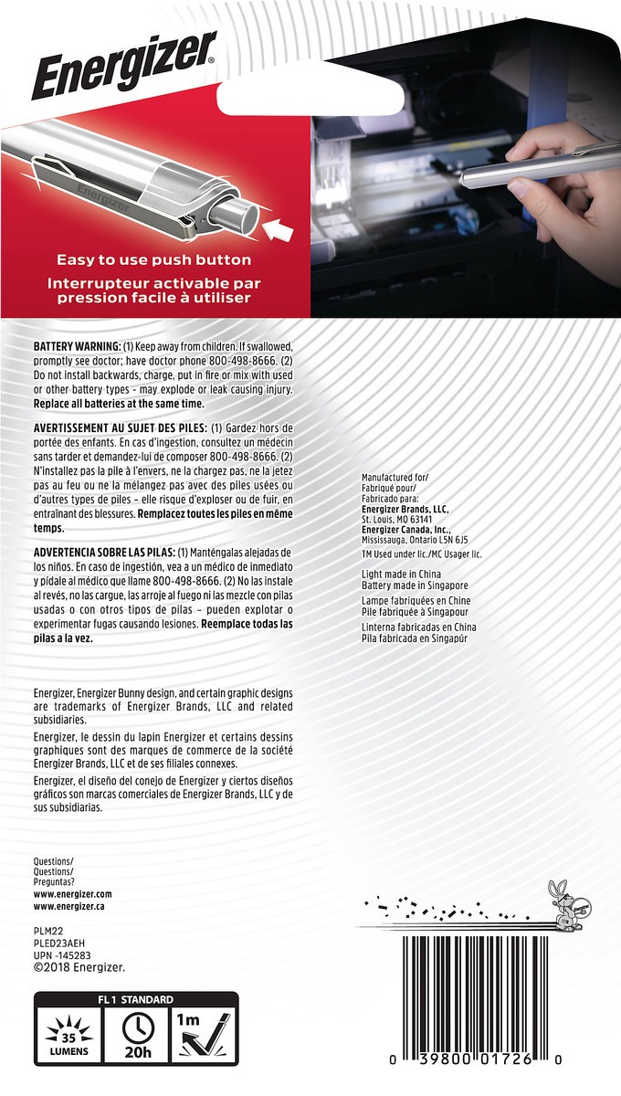 Always have a little light wherever life takes you with the Energizer LED Pen Light. This compact, lightweight, and reliable metal pen light packs a surprising punch, delivering up to 35 lumens of dir…