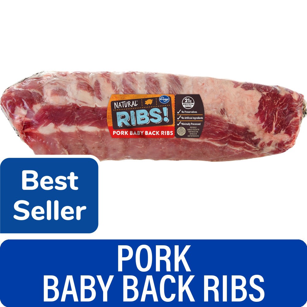 Kroger® Naturalˆ Pork Baby Back Ribs are a protein-packed delight. Each serving offers 21g of protein from delicious pork. Featuring no artificial ingredientsˆ and minimal processingˆ, these ribs offe…