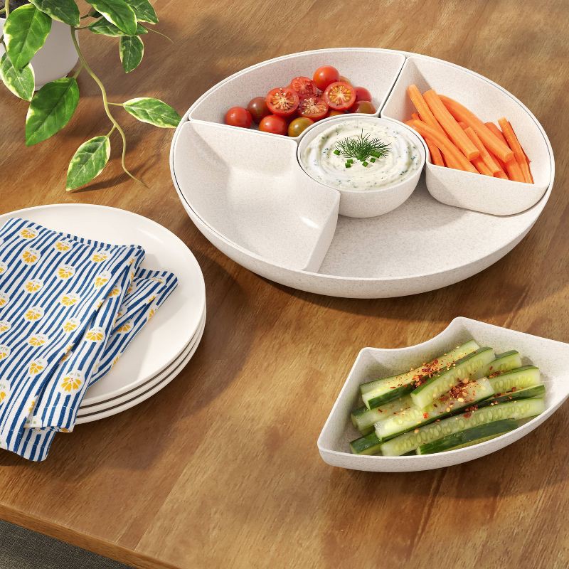 Enhance your serveware collection with this 6-Piece Recycled Poly Pro Serving Bowl from Room Essentials™. This set includes a dip bowl and four triangular plates which can be inserted into a large rou…