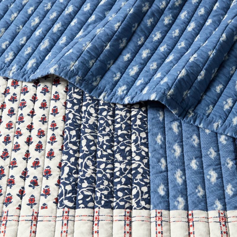 Full/Queen Patchwork Quilt Set Blue/Dark Blue/Natural - Threshold™