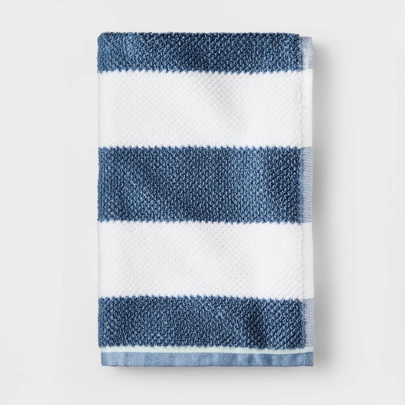 Striped Kids' Hand Towel Navy with SILVADUR™ Antimicrobial Technology - Pillowfort™: Cotton, OEKO-TEX Certified